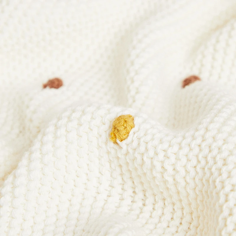 Sehr süße Babydecke mit bunten Punkten aus sehr weicher Bio-Baumwolle hergestellt. Die Decke bietet dem Nachwuchs einen hohen Komfort und Geborgenheit. Wegen der Leichtigkeit ist die Decke ein idealer Begleiter im Kinderzimmer oder Kinderwagen.