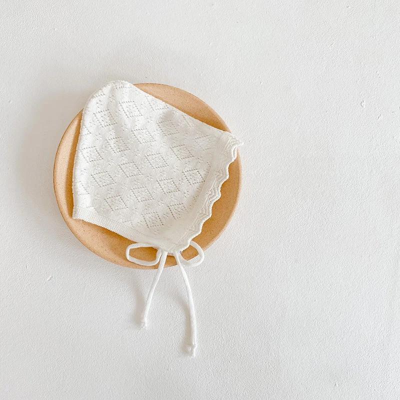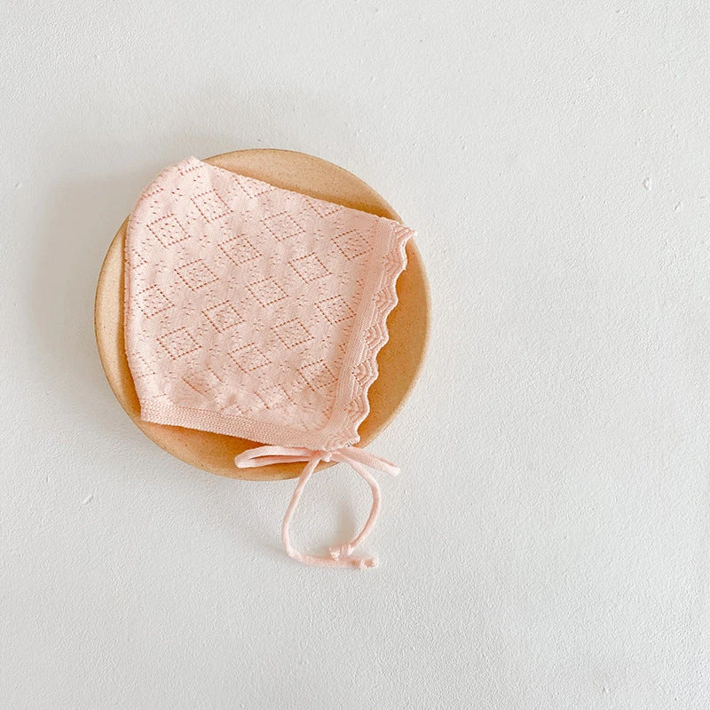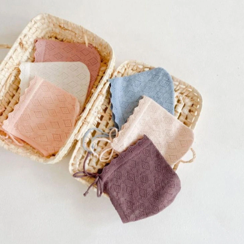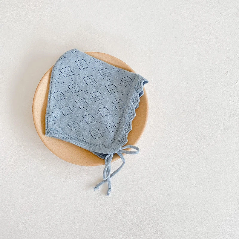 Süße klassische gestrickte Baumwoll-Häubchen zum Binden. Sind passend zu jedem Outfit und auch für jede Jahreszeit gedacht.