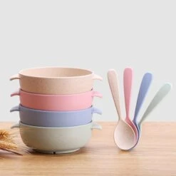 Niedliche Babyschale mit Löffel aus umweltfreundlichen natürlichen, biologisch abbaubares Weizenstroh. Es enthält daher keine giftigen Substanzen.