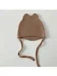 Süße klassische gestrickte Baumwoll Mütze zum Binden mit ‚Ohren‘ .