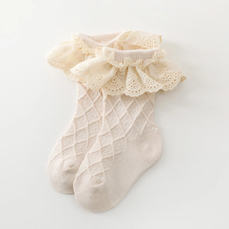 Süße Babysocken mit Rüschchen aus Baumwolle, in fünf verschiedenen Farben erhältlich.