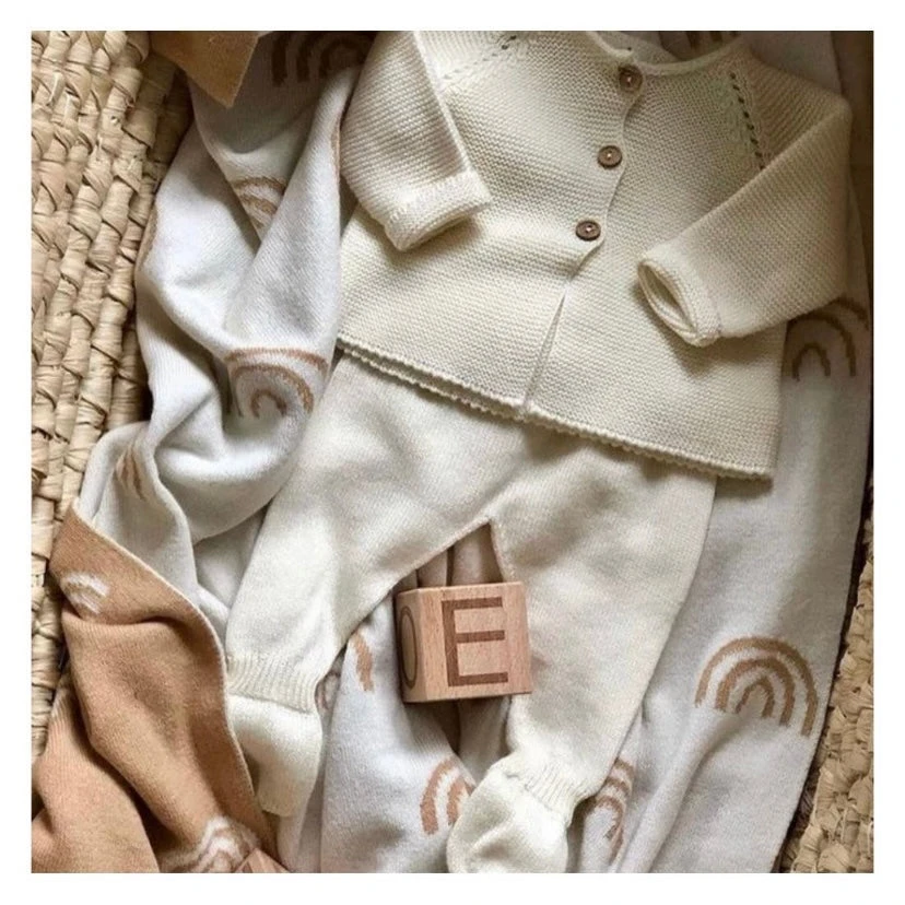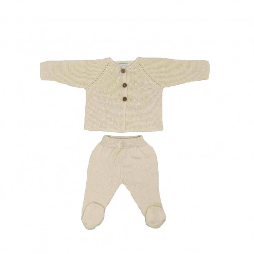 Süßes handgefertigtes Strickset für Neugeborene aus 100% Bio-Baumwolle.
