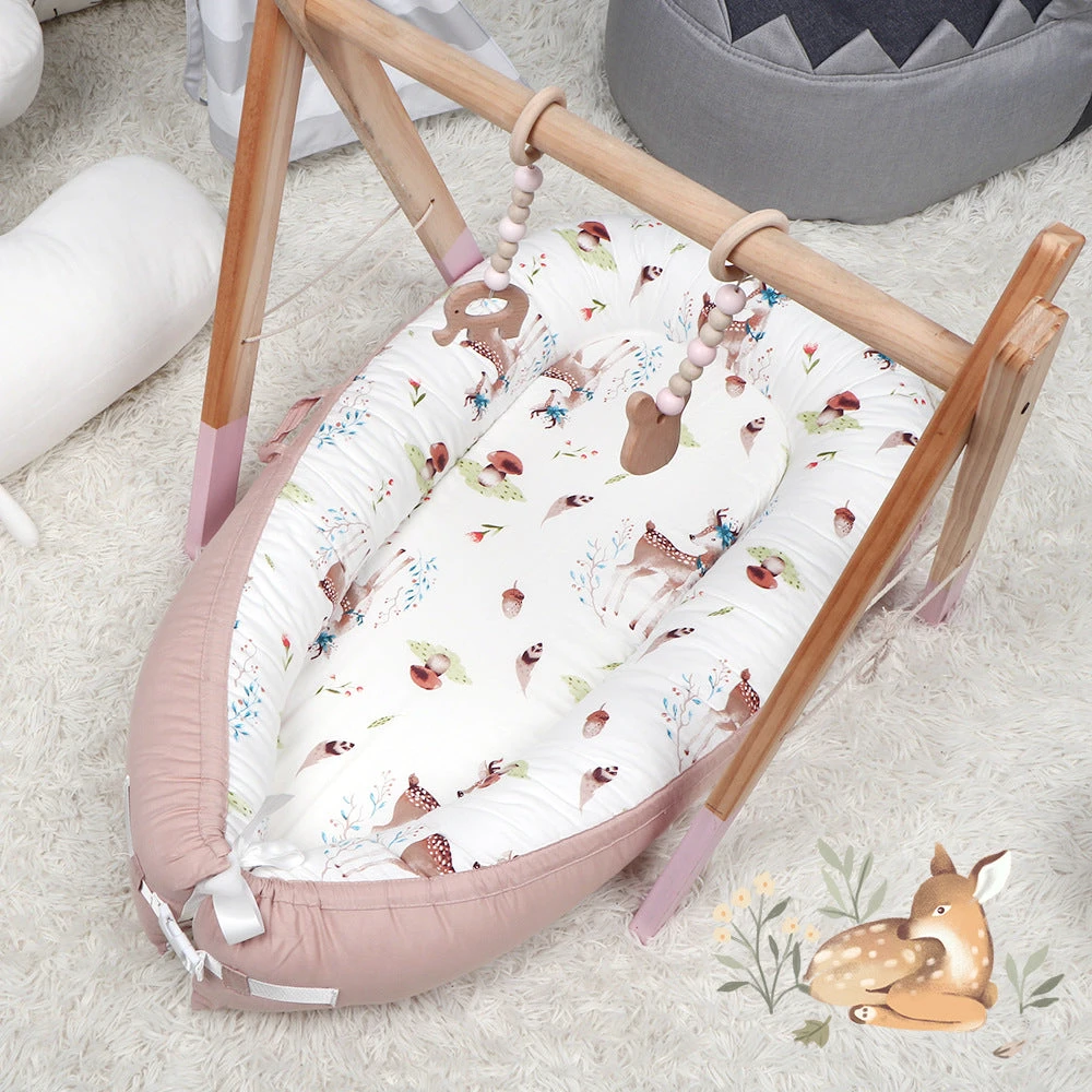 Ein wunderschönes Nestchen für Ihr Baby. Das Nest mit Tiermotiven gibt es in zwei verschiedenen Farben und ist aus hochqualitativen Materialien gefertigt.