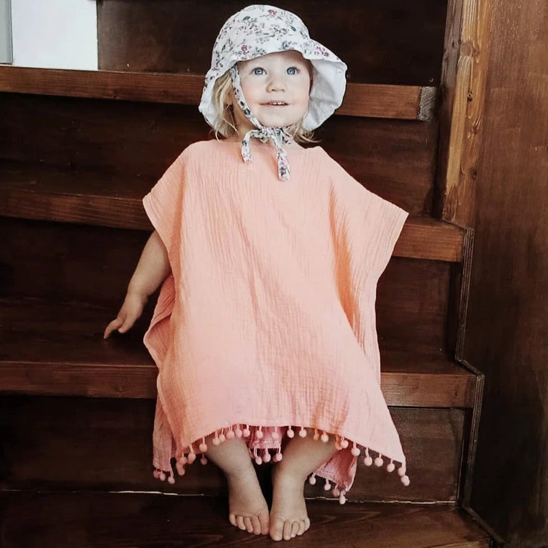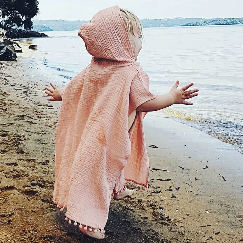 Süßer Poncho mit Kapuze für den Sommer oder den Strand aus einer feinen Baumwollmischung die Feuchtigkeit absorbiert und dadurch gut trocknet.
