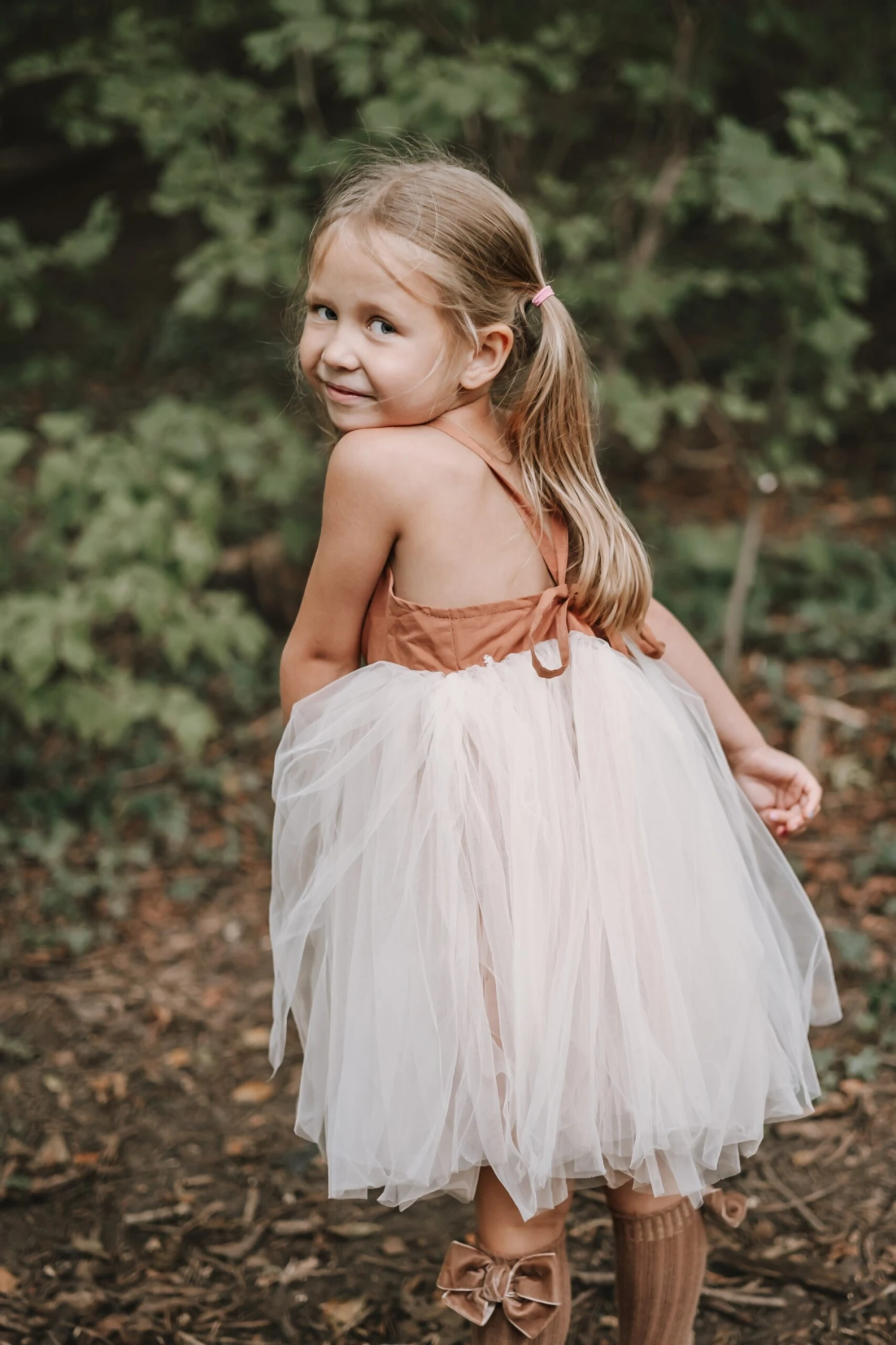 Entzückendes Tüllkleid aus Bio-Leinen/Baumwolle in verschiedenen Größen erhältlich. Die Größe entspricht der tatsächlichen Größe des Kindes.