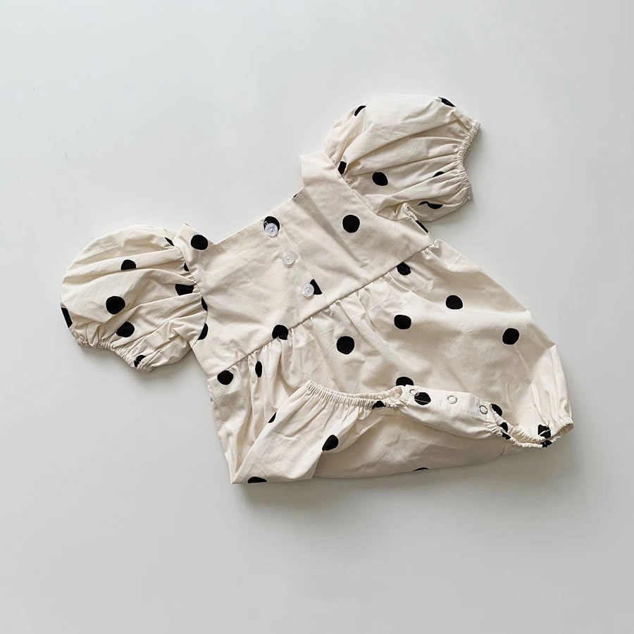 Entzückender Baby Bloomer mit Pufferärmeln aus Bio-Baumwolle.