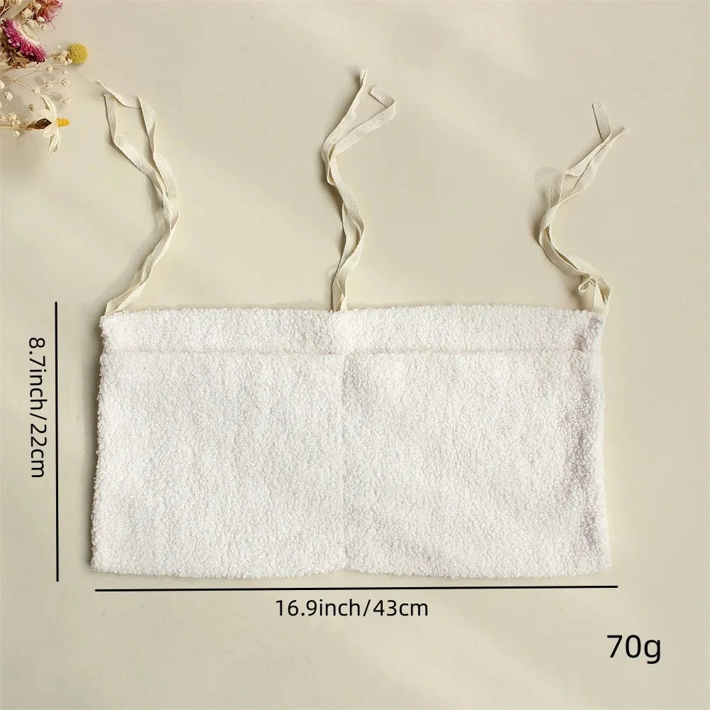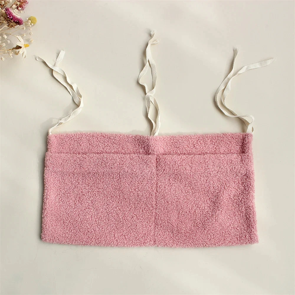 Hergestellt aus flauschiger Baumwolle. Die Tasche fürs Gitterbett ist praktisch, um Schnuller, Windeln und andere Accessoires für die Schlafenszeit aufzubewahren.