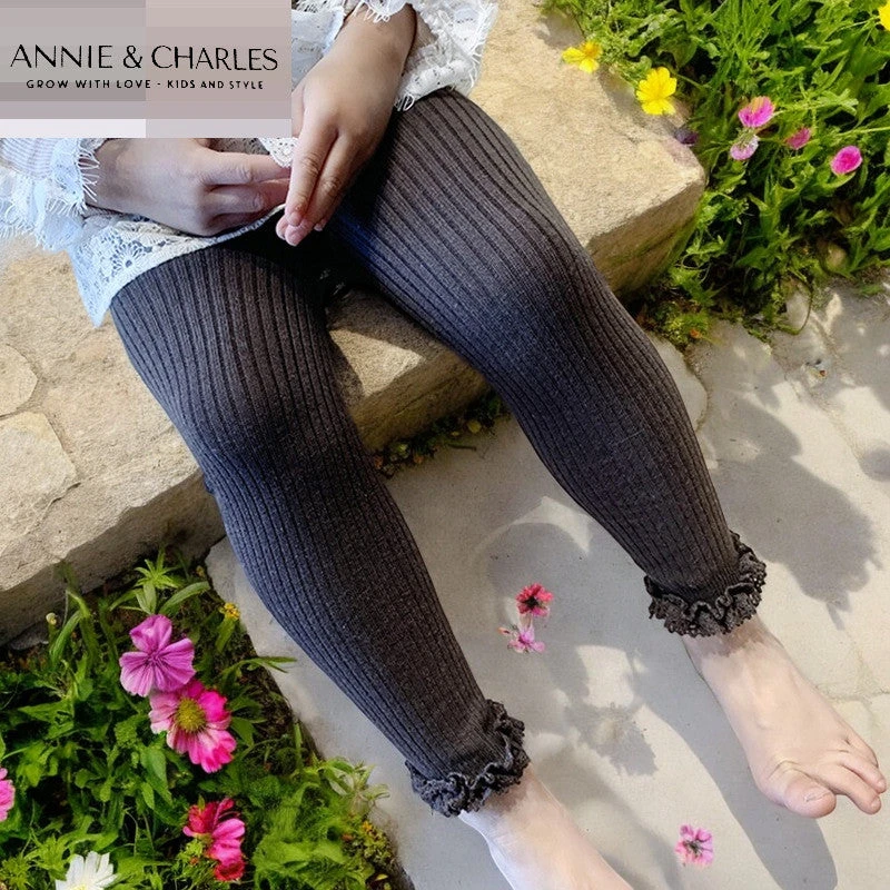 Süße und stretchige Leggings mit integriertem in Ripp-Look mit Rüschenbund in verschiedenen Farben erhältlich.