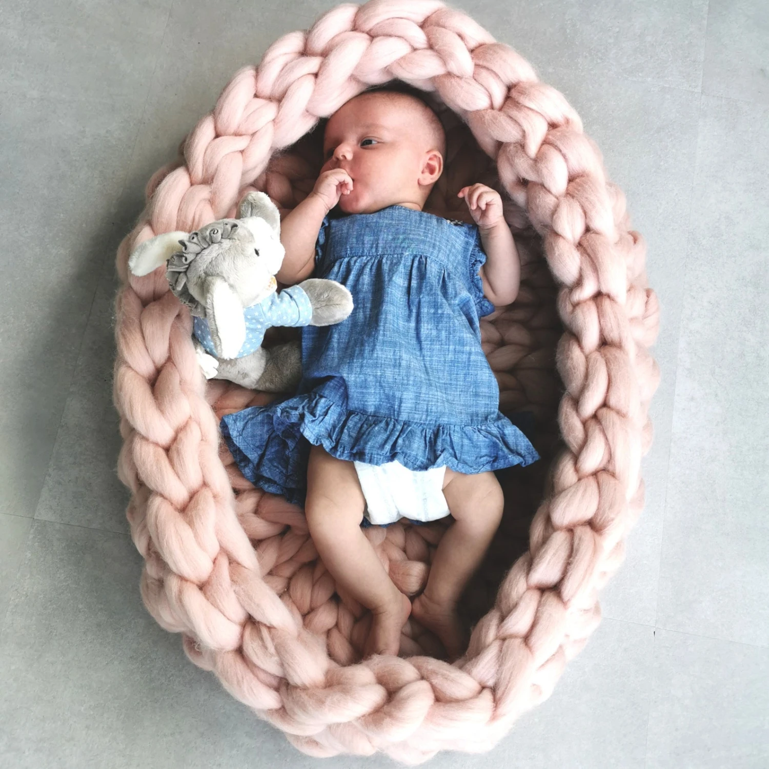 Handgemachtes weiches und gemütliches Babynest für Ihr Neugeborenes! Ein kuschliger Ort für Ihr Baby und gleichzeitig ein schönes Innendetail.