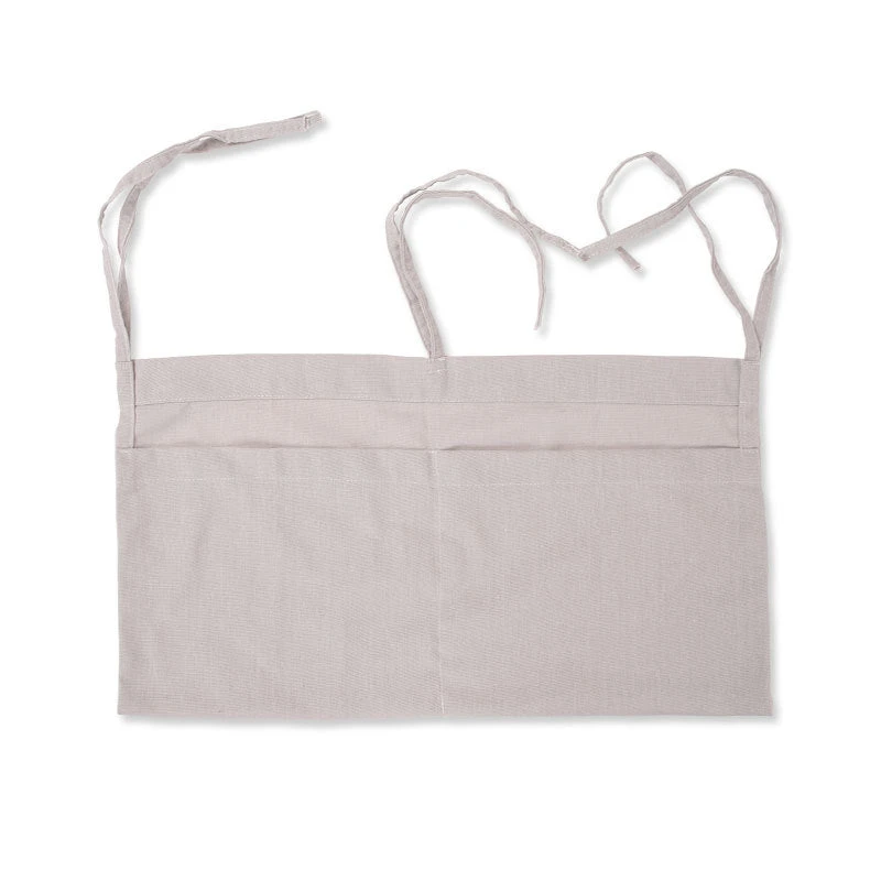 Hergestellt aus natürlicher Baumwolle. Die Tasche fürs Gitterbett ist praktisch, um Schnuller, Windeln und andere Accessoires für die Schlafenszeit aufzubewahren.