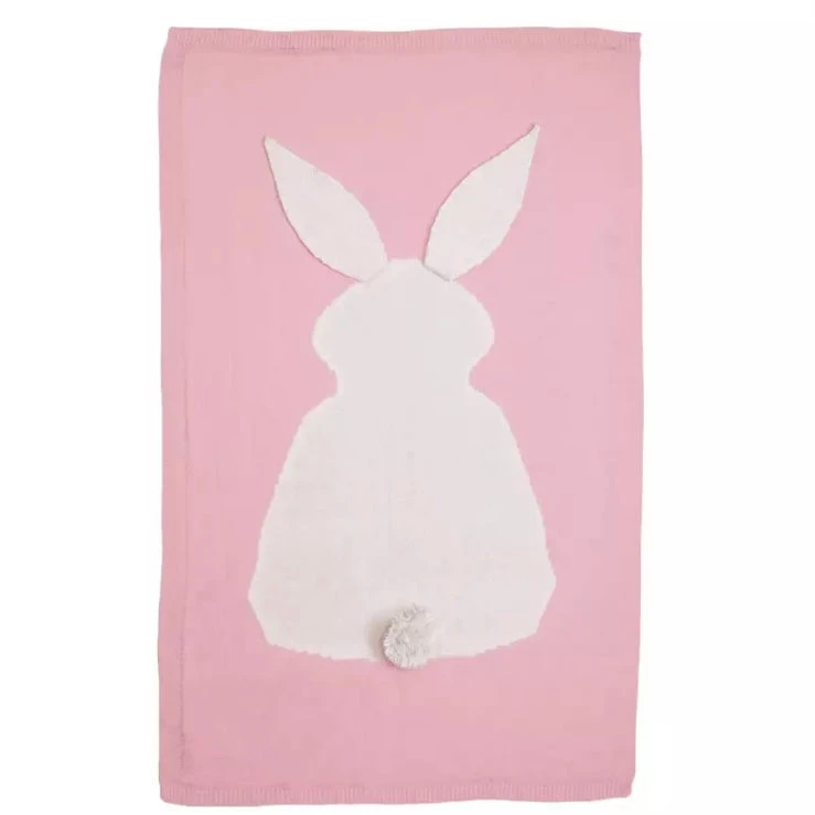 Sehr süße Babydecke mit Hasen und beweglichen Ohren und Bommel. Die Decke bietet dem Nachwuchs einen hohen komfort und Geborgenheit. Wegen der Leichtigkeit ist die Decke ein idealer Begleiter im Kinderwagen.
