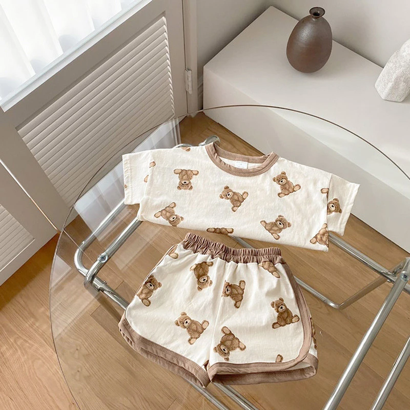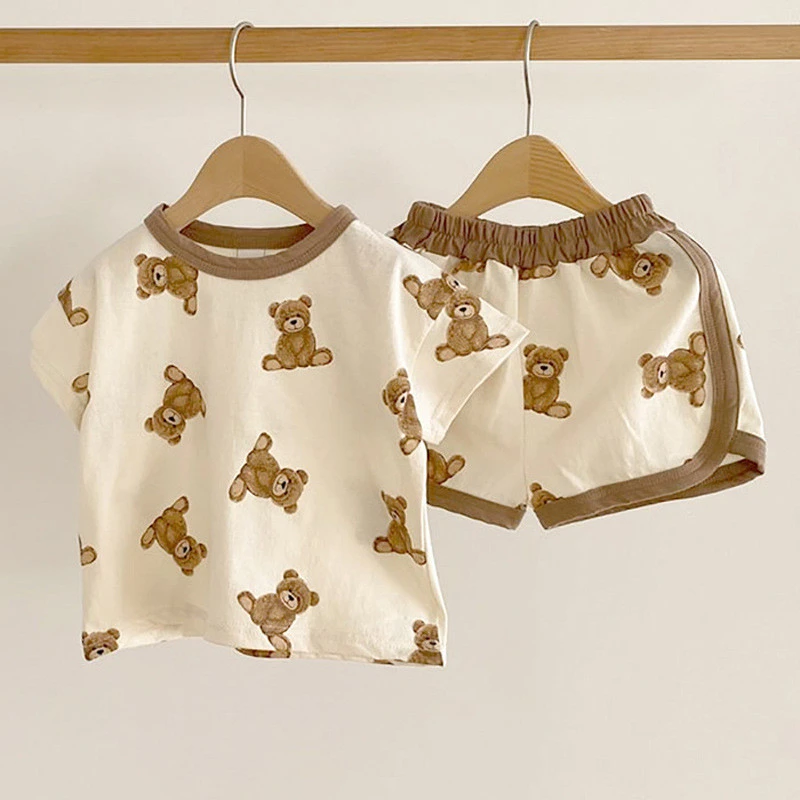 Süßes Baby und Kinder Set bestehend aus Shirt und Hose. Praktisch, angenehm aus weichem Material und stylisch zu gleich, mit süßen Bären.