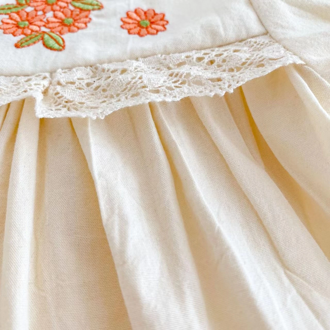 Baby und Kinder Set bestehend aus Bluse und Hose. Praktisch, angenehm aus weichem Material und stylisch zu gleich! Beige mit süßen Blumen.