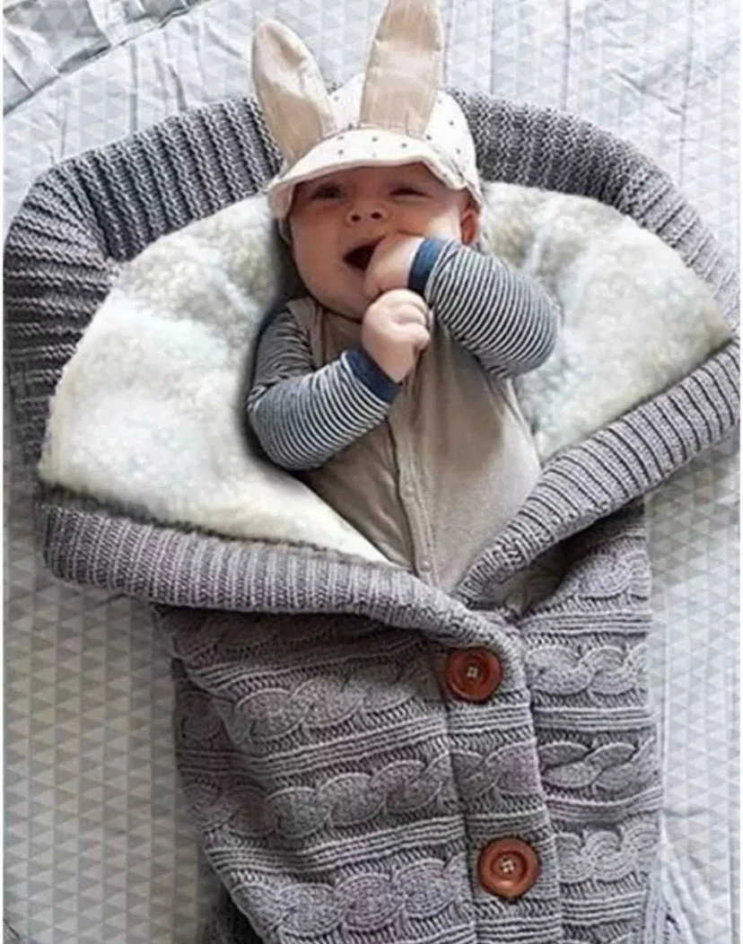Unsere gestrickten Babyschlafsäcke sind aus sehr warmem Material mit kuschligem Fleece gefertigt.