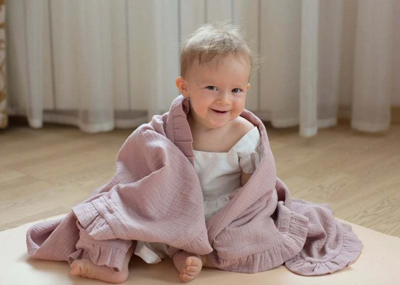 Die weiche und atmungsaktive Babydecke ist in einer Vielzahl von Farben erhältlich. Der weiche Baumwollstoff hält warm und hat eine schöne Textur. Die Decke ist feuchtigkeitsabsorbierend und daher auch zum Baden geeignet – was sie zum besten Begleiter für Ihre kleinen macht. Die minimalistische Decke ist perfekt zum Kuscheln oder als weiche Decke im Kinderwagen und natürlich als Dekoration für Zuhause.